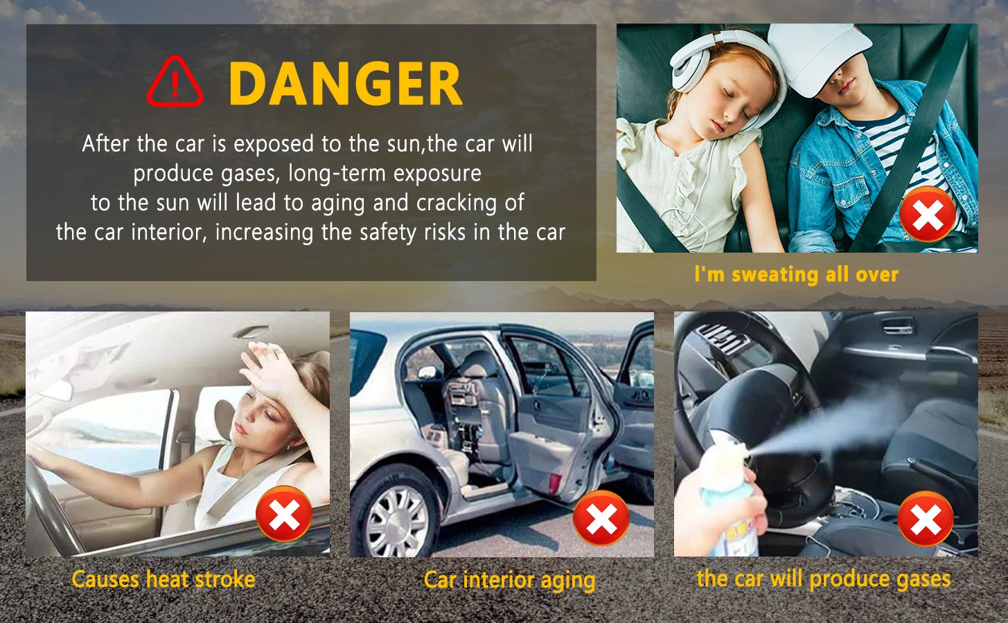 Effective UV Blocked All new upgraded dense polyester fabrics with reflective coating effectively block out the UV rays and the heat to protect the leather interior inside. Excellent Sun Protection & Heat Insulation Completely cuts off the heat conduction path to block it out, up to 16 degree temperature drop. Shield the Cabin from the Sun Bat wing-shaped with foldable design offers larger shading area for better heat insulation. Soft Hemmed Edges No light will leak in around the edges and won’t scratch the interior or glass. Lighter Material, More Durable Glass fiber rib is much sturdier with better support, made to last. Wide Compatibility Custom-made to fit for various car models. Eco-Friendly Material Safe & Odorless Renewable PET material offers long-time reliability, and is RoHs certified. Multi-Scenario Applicable Keep the cabin cool and protect your privacy and interior. Super-Easy to Use 1. Open the umbrella in the car. 2. Set it up behind the windshield. 3. Let down the windshield sun shades of both driver and passenger seat to fix the umbrella.